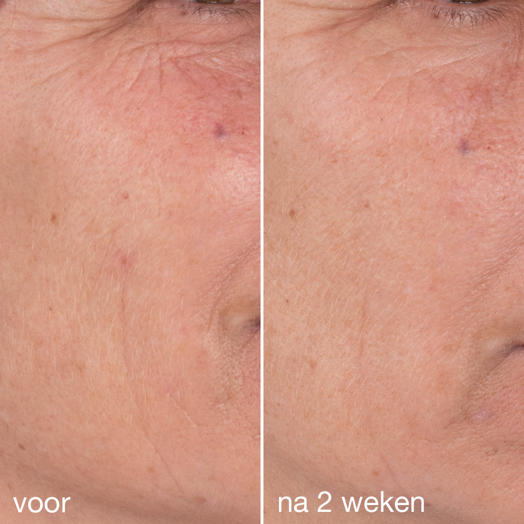 *klinisch getest op 30 vrijwilligers met focus op vermindering van rimpels, poriën, donkere vlekken en ongelijkmatige teint. 2 weken getest.