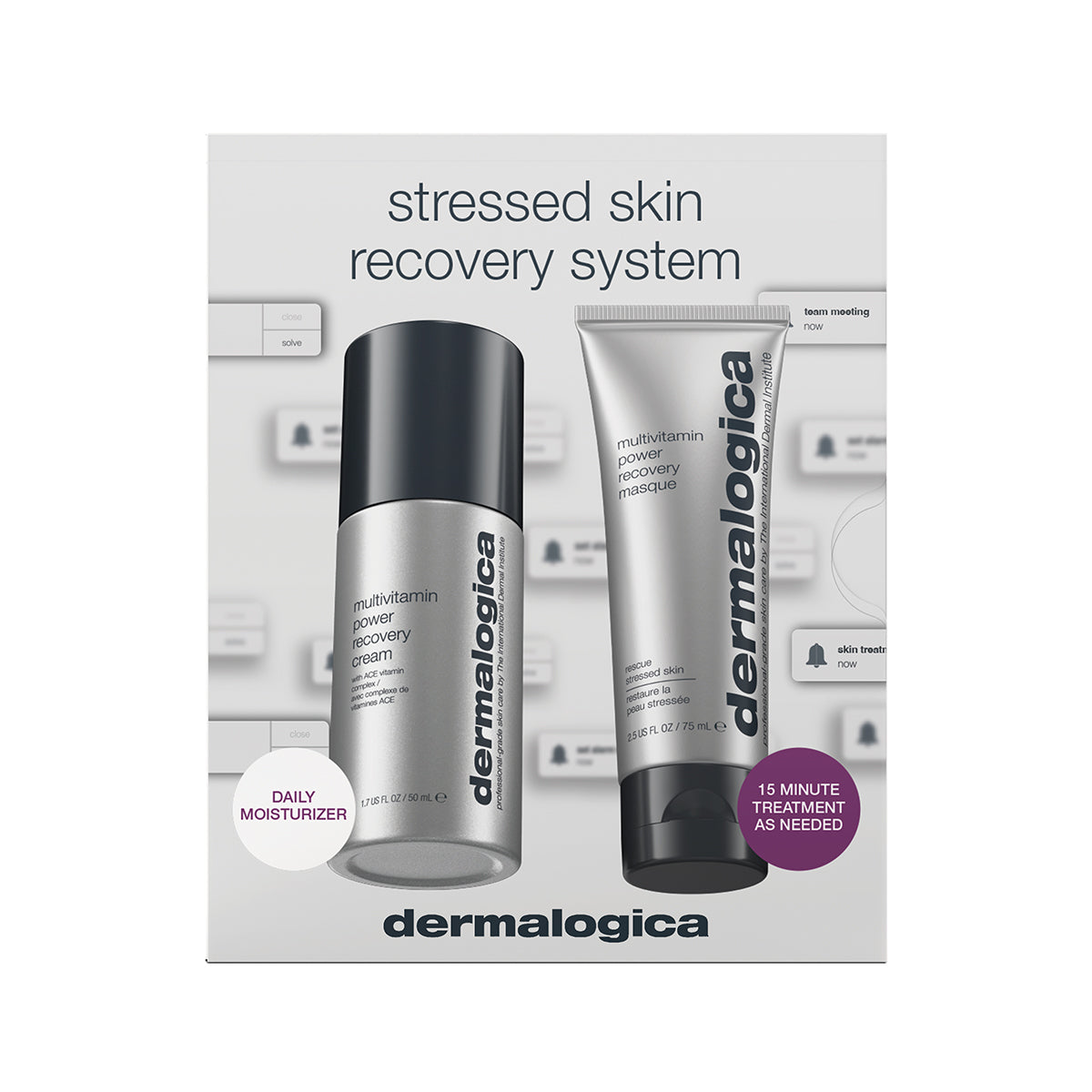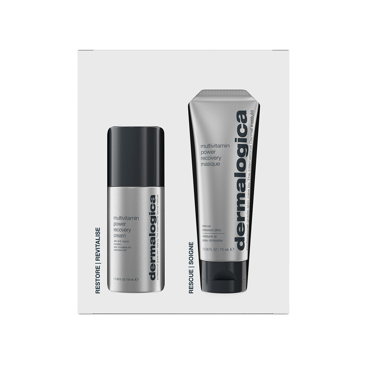 Deze skin kit bevat MultiVitamin Power Recovery Cream (50ml) en MultiVitamin Power Recovery Masque (75ml) om de gestreste huid te behandelen.